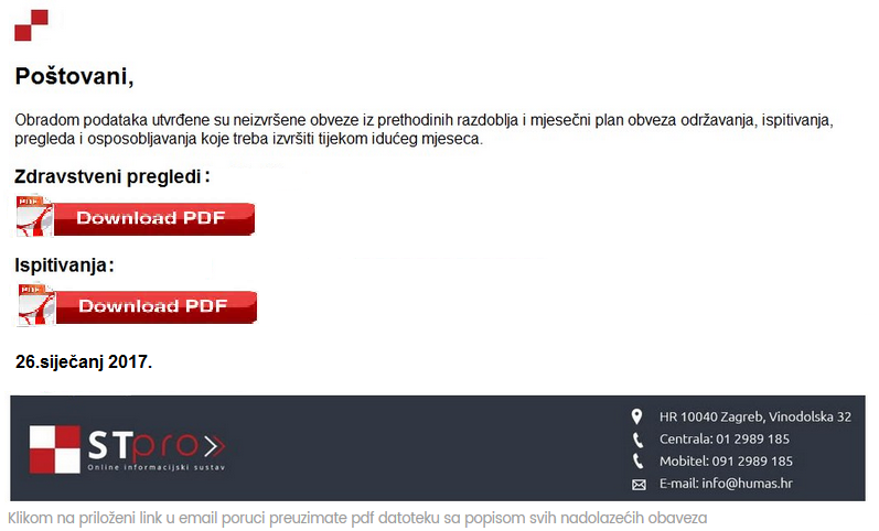 Klikom na priloženi link u email poruci preuzimate pdf datoteku sa popisom svih nadolazećih obaveza