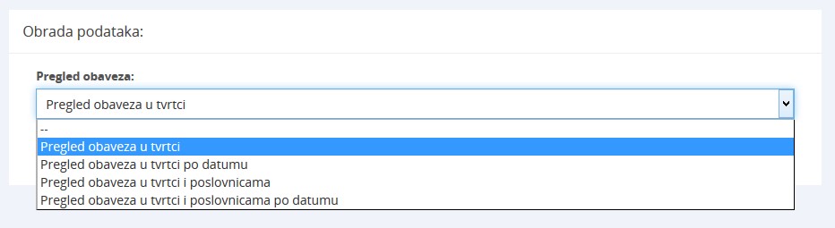 Slika 15-2: Izbor vrste pregleda obaveza.